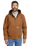 An update to a Carhartt icon-the J130-this dependable, durable jacket was created with input from the hardworking people who wear our gear day in and day out. 12-ounce, 100% ring spun cotton washed duck Quilted nylon lining for easy on and off; 80-gram, 100% polyester 3M Thinsulate featherless insulation for warmth without the weight Attached quilted three-piece hood with drawcord closure Full-length brass front zipper Two interior pockets: one zippered, one hook and loop Two large hand pockets Pen stall in right pocket Locker loop Elbow pleats for ease of movement Rib knit cuffs and waistband Carhartt-strong, triple-stitched main seams Carhartt label sewn on left pocket Loose fit